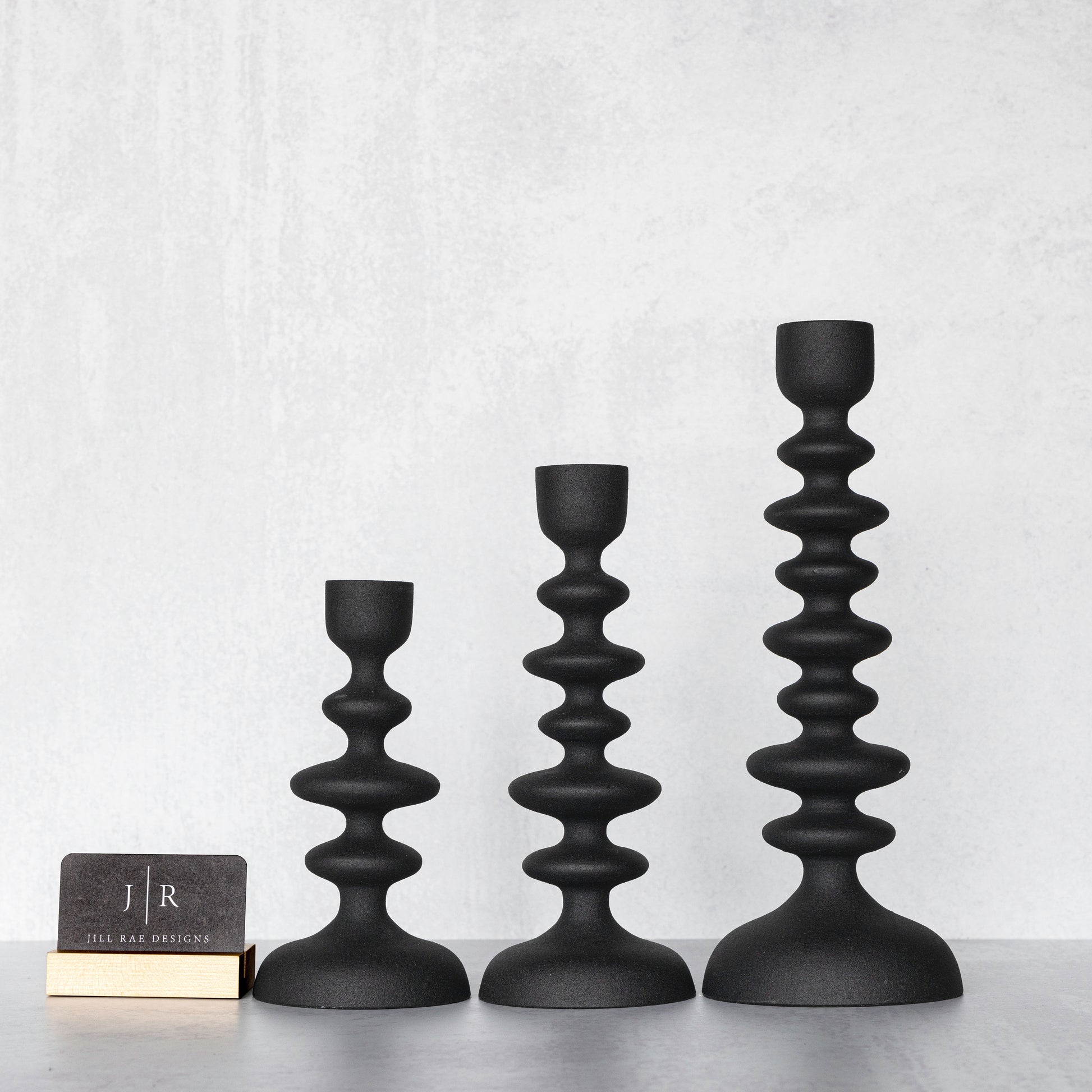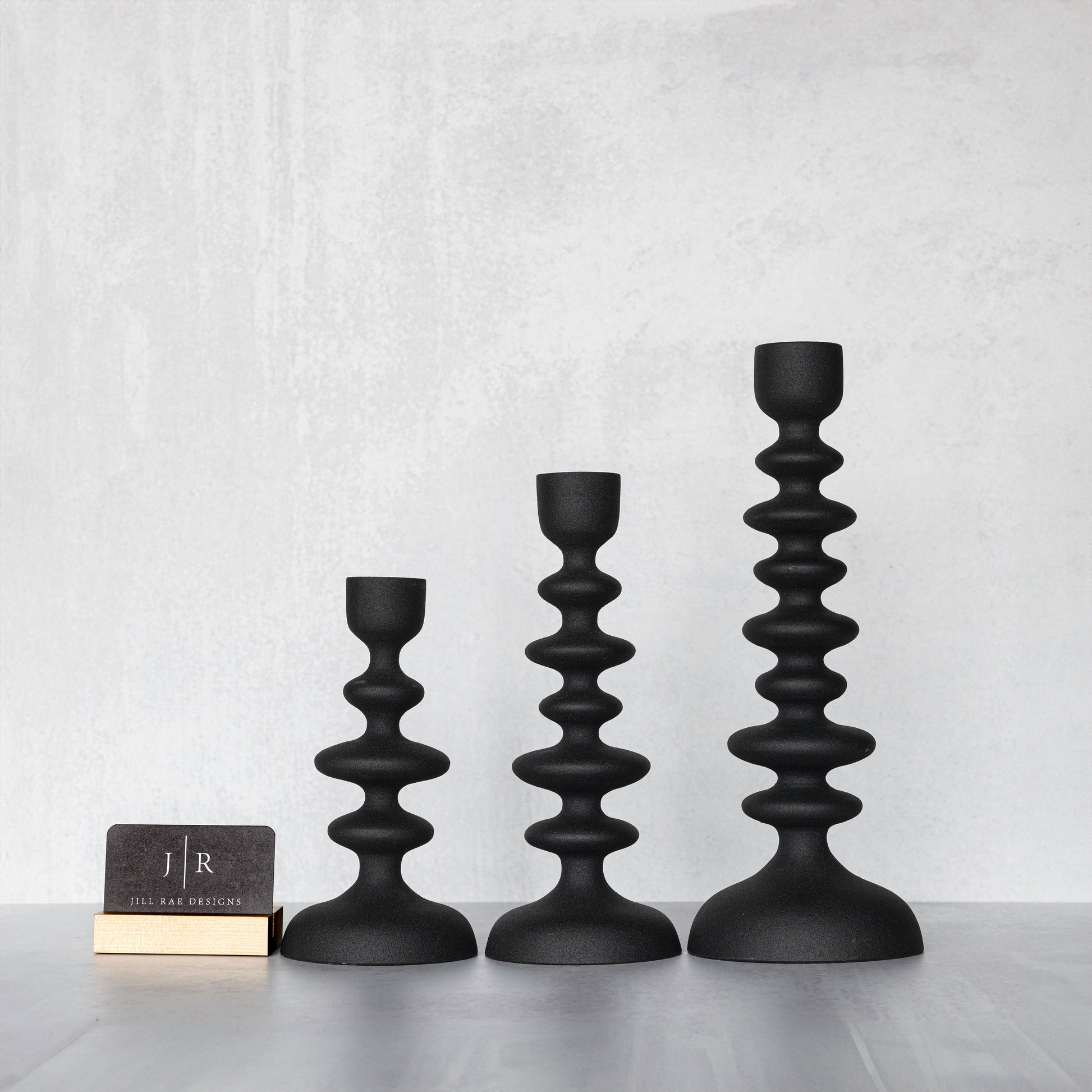 Elevate the aesthetic of your interior décor with our sleek and sophisticated black aluminum candle stick holders. Crafted with precision and style in mind, these candle holders add a touch of elegance to any room. Create a warm and inviting atmosphere with these modern yet timeless pieces.