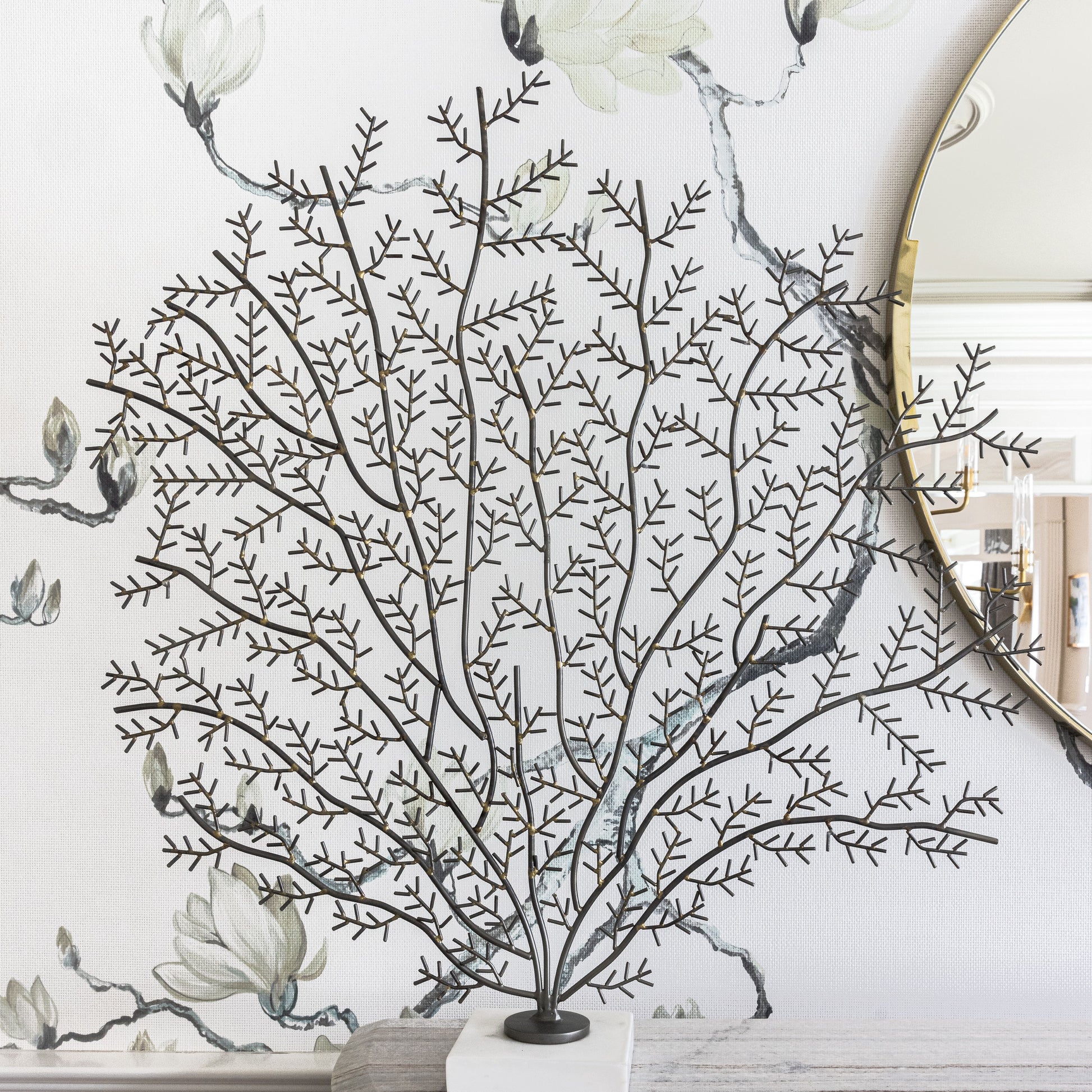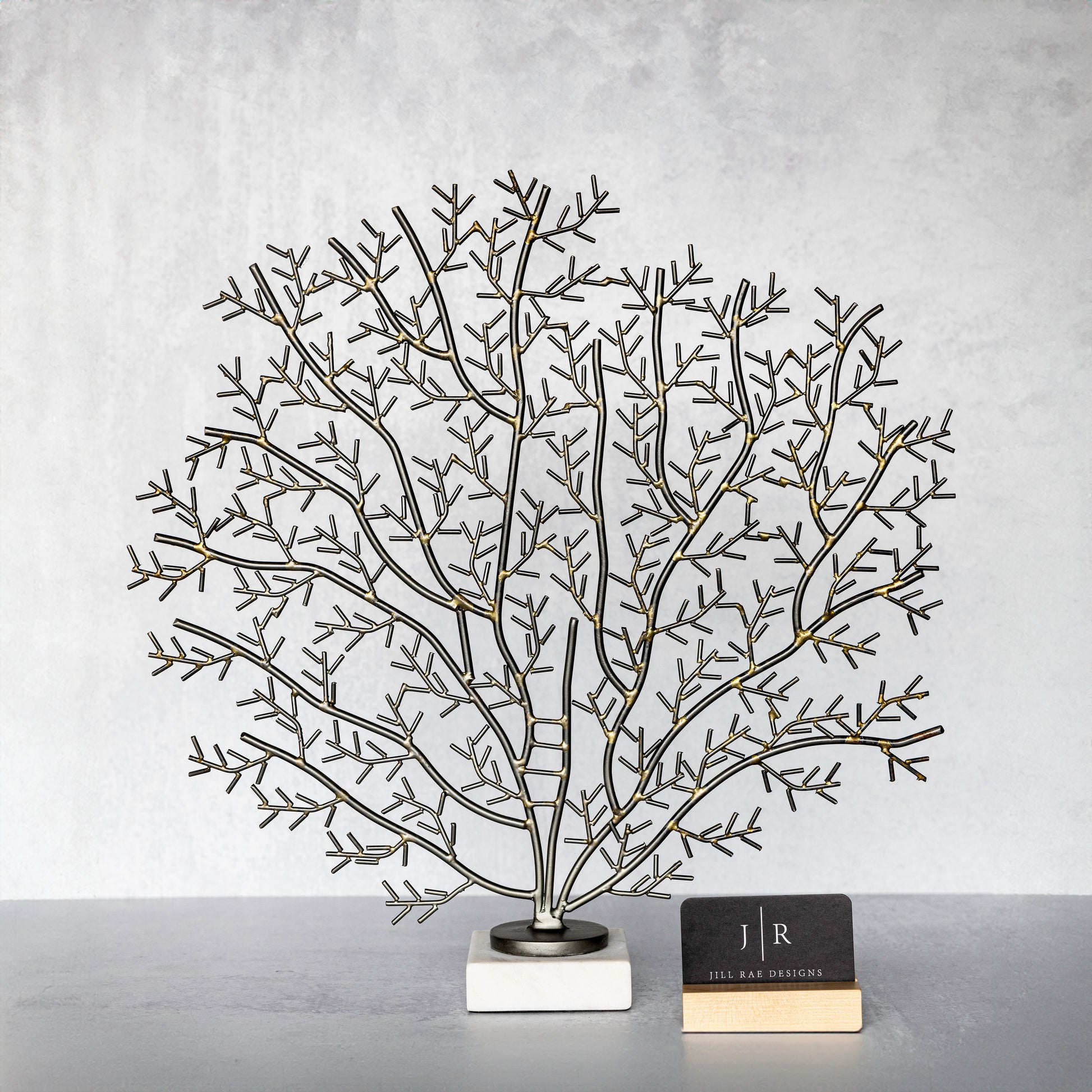 Add a touch of sophistication to your interior decor with this Metal Tree. Perfect for creating a stylish focal point in any room, this exquisite piece showcases the beauty of metal artistry. Embrace the beauty of nature indoors and bring a touch of whimsical charm to your living space with this elegant metal decor.