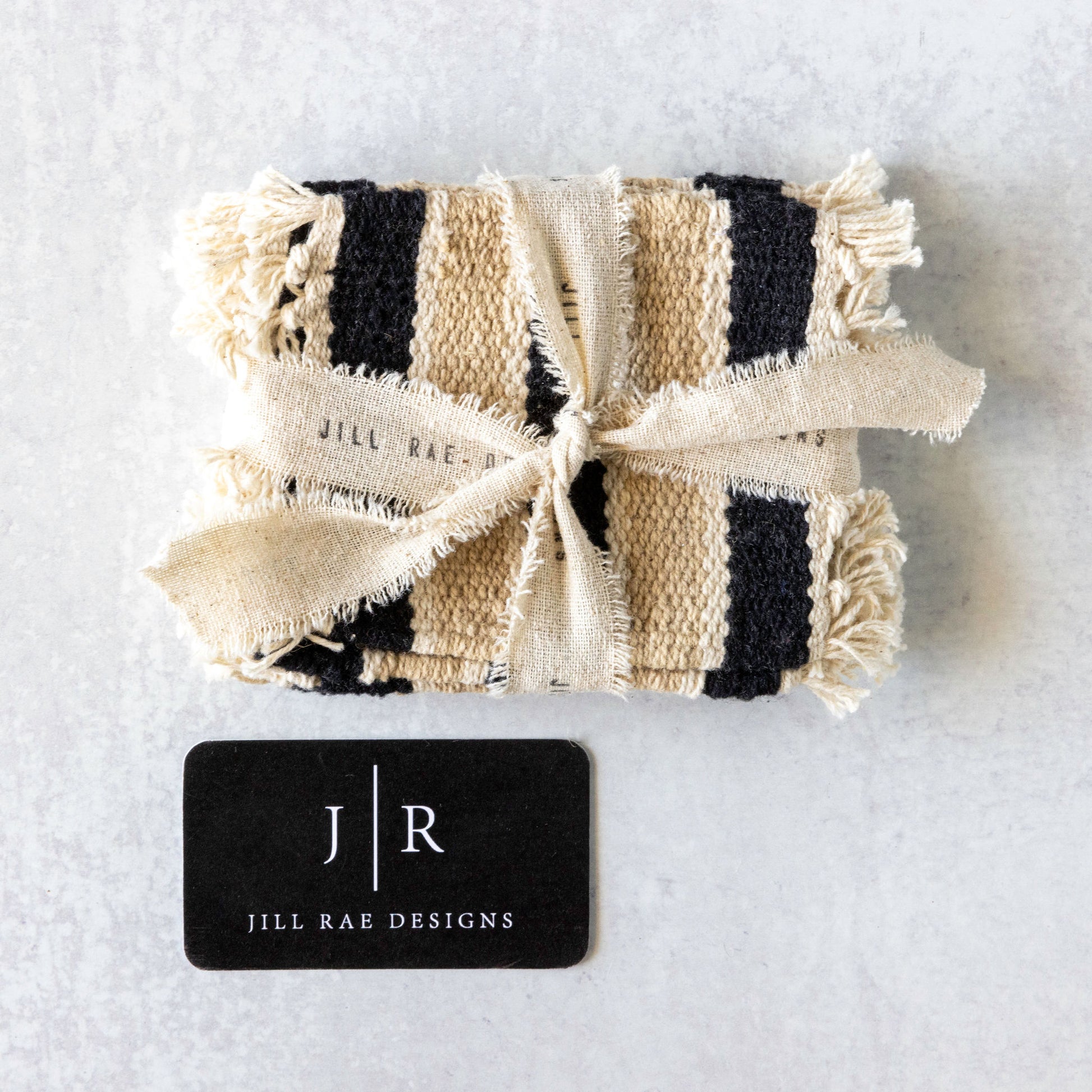Elevate your interior décor with our set of black and white coasters. These stylish accessories are not only practical but also add a touch of sophistication to any room. Perfect for protecting your surfaces in style, these coasters are a must-have for any design enthusiast.