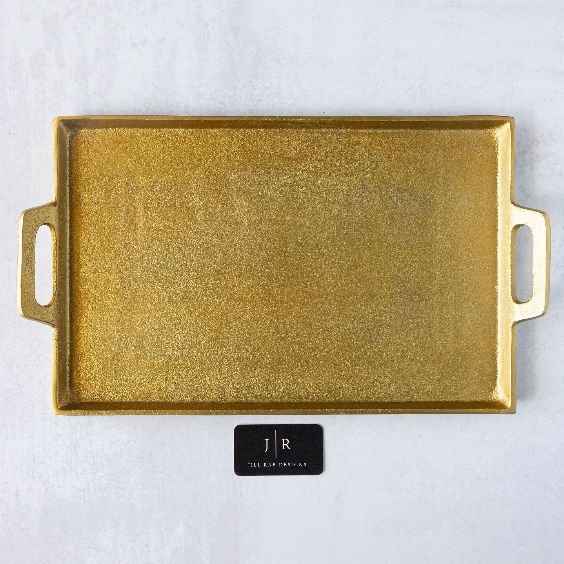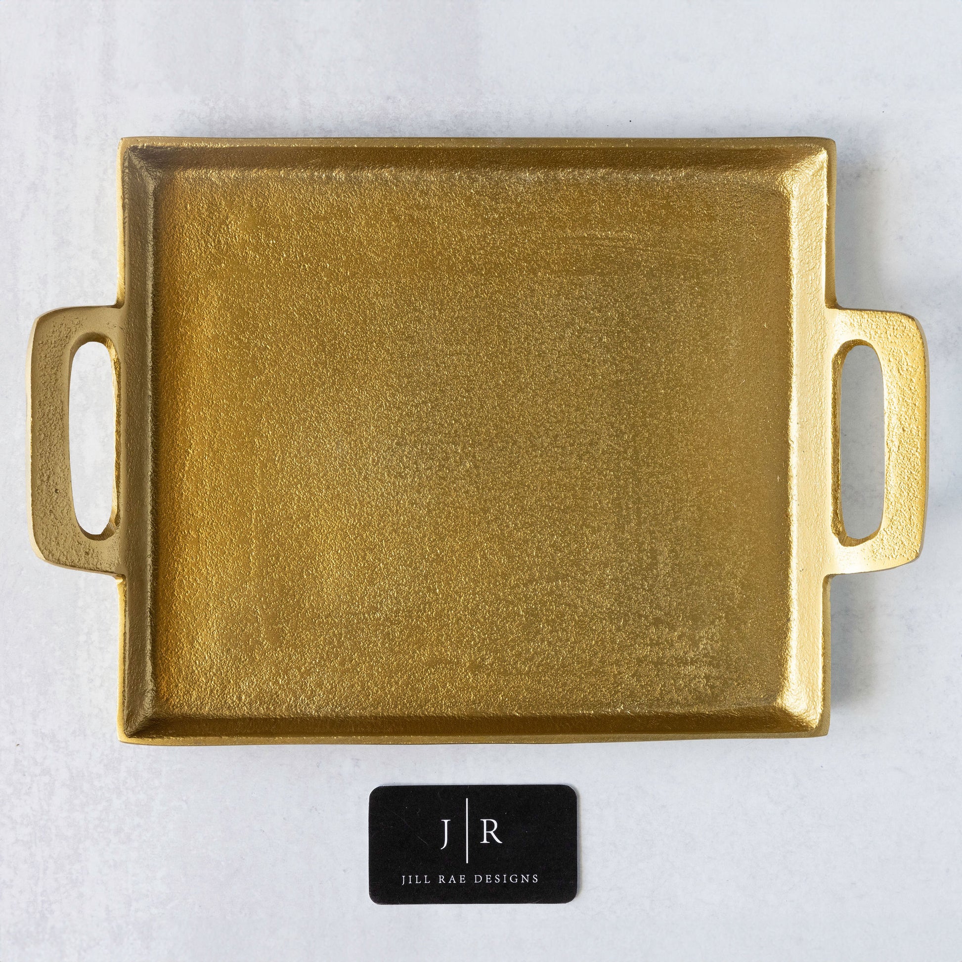 Make a statement with our stunning Gold Tray. Whether you use it to organize your essentials or showcase your favorite pieces, this tray is the perfect addition to any interior décor. Elevate your design aesthetic with this chic and versatile accessory.